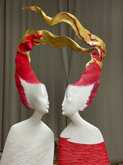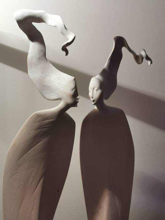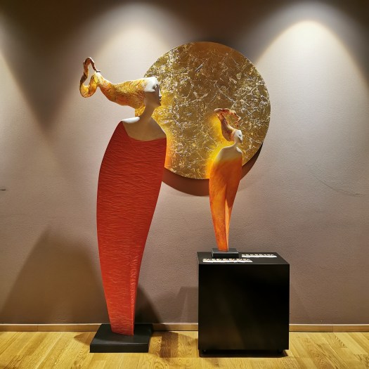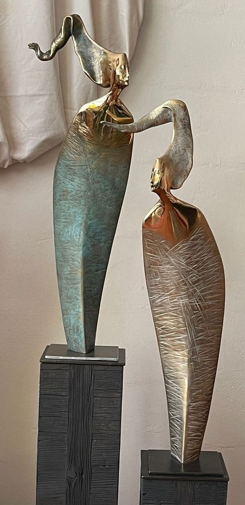 In diesen filigranen, schwerelosen Figuren inszeniert der Künstler die freie und vollkommene Idee der Natur, fängt die luftige Leichtigkeit der Winde ein und bändigt beides in Eleganz und stiller Schönheit. Seine ätherischen Frauengestalten sind aber auch eine Hommage an die reiche und lebendige Sagenwelt seiner Dolomitenheimat, in der das Leben auch heute noch von ebenso mächtigen wie geheimnisvollen Frauengestalten geprägt wird.